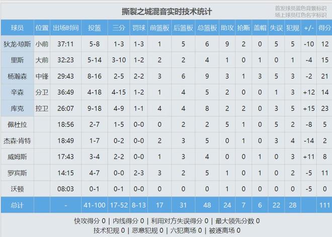 最后一投没有交给杨瀚森,辛森绝杀三分不中,混音队2分惜败。全场结束,混音队111-113不敌南湾湖人。杨瀚森16投8中,三分5中2,罚球2中2,砍下21分9篮板3助攻1抢断3盖帽5失误3犯规!得分创造生涯新高,两记大心脏三分让人惊喜!