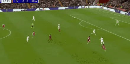 第12分钟,萨拉赫在右边路强行突破,连续突破皇马两个后卫,是赫伊森将险情化解。